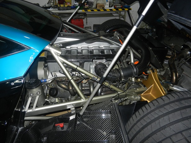 イタリア製のハイパースポーツカーは水回りとエアコン整備で入場しています。